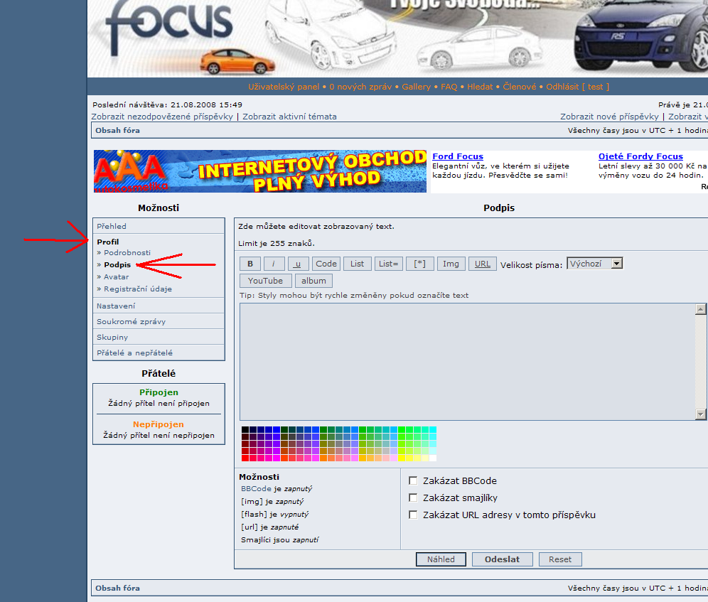 Dalsi informace jsou jakoby "navic" (vyjma banneru grupy, ktery se stal na foru standartem). Apeloval bych na vas, prosim, vyuzivejte moznost dodani dalsich informaci do podpisu s rozmyslem. Neni pak totiz nic horsiho, nez kdyz nekdo napise jednoradkovy prispevek a diky "podpisu" je tento prispevek vysoky tak, ze zabira vysku nekolika prispevku. Cili nemyslim pocet informaci v podpisu, ale rozmanitost prezentaci techto informaci (zejmena pak jejich velikost). Je to zbytecne a zvysuje to neprehlednost fora pri cteni. Diky.