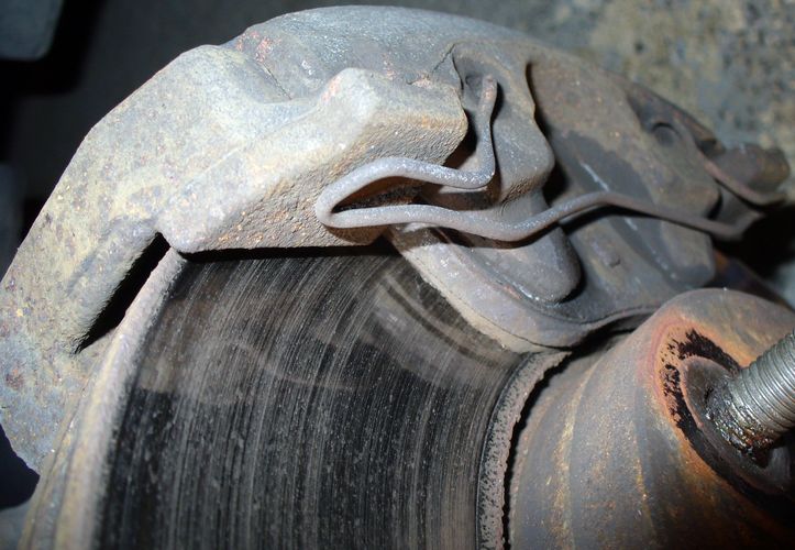 Také si myslím, že originály vydrží nejdéle, i když záleží, co se s nimi dělá. Moje přední vydržely 170 tkm a kotouč měl hranu 1mm a druhá sada destiček (poprvé měněno někdy kolem 80 tkm) měla cca 2mm. Před sundáním to vypadalo takto: Vyměnil jsem to za ATE PowerDisc a destičky Maxgear a trochu ošetřil antikorozním sprejemspeedy píše:mám na autě taky Brembo, zadní již pár tisíc za sebou a přední jsem dělal předevčírem. Tak uvidíme, jak to bude s výdrží. Mám 220tis, originály vydržely vcelku dost. S korozí nemám problém, zadní jsem natíral já a přední jsem koupil natřený:-) Provoz ukáže...