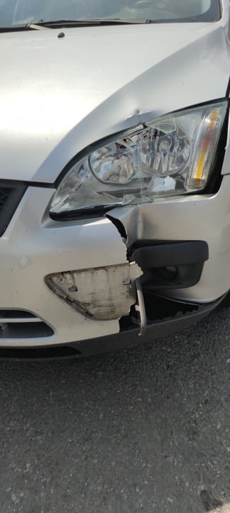 Přední levé světlo je KO, kapota dostala taky trošku, přední narázník je KO a dále nevím. Kvůli přednímu blatníku, který se nárazem posunul trošku dozadu se blbě otevírají a zavírají přední dveře u řidiče a zadní jsou na tom ještě hůř. Dveře od kufru KO, zadní nárazník KO a taky levý zadní blatník je KO a myslím, že se určitě nějakým způsobem hnulo i levé zadní kolo, protože je blíže blatníku než to kolo napravo, které je asi v pořádku.