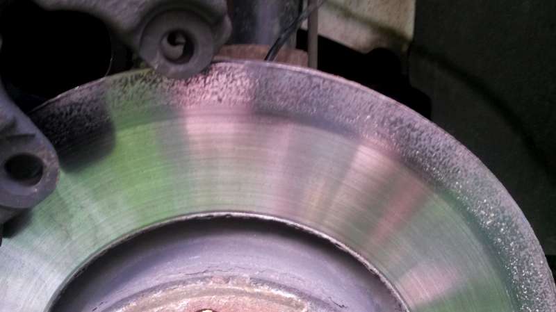 Ahoj, čeká mě výměna předních brzd. Dnes jsem je rozmontoval, abych se podíval, jestli budu kupovat jen destičky, nebo i kotouče. Po sundání jsem zjistil, že destičky nebrzděj celou svou plochou. Kotouč má 0.9mm.