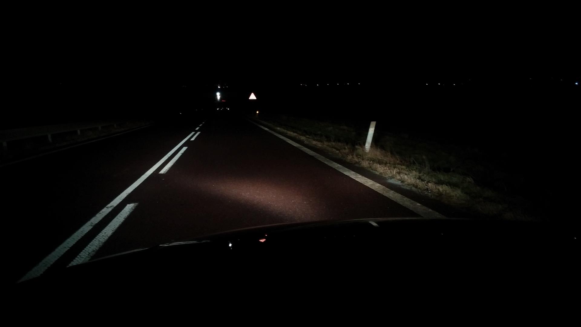 Vymontoval jsem z auta HIDsadu a osadil halogenovými žárovkami Phillips Nightvision. Bohužel mě tlačil čas a nestihl jsem při výměně zkontrolovat paraboly a čočky. Po výměně svítí světla viz. foto - nesvítí rovnoměrně, ale těsně před autem jsou 2 místa kde svítí silněji. Světla se mi teď v zimě nechcou rozdělávat a nechávám to až bude tepleji...
