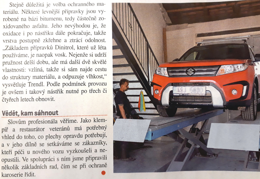 Vidím, že v aktuálním SM toto téma také rozebrali a odborník doporučil to samé - tj. nástřik pomocí přípravků na bázi vosku.LeonardoTM píše: V jiném vláknu psal uživatel "Specík" něco o vosku na podvozky: