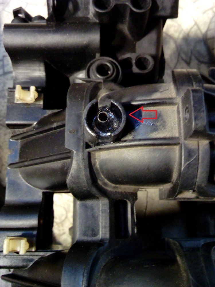 Ještě jsem provedl další úpravy: zalepit epoxidem další 3 závity, k uchycení konzole od bovdenu ovládání škrtící klapky a ještě provrtat sání v místě. Kde je připojená hadička podtlaku od lišty s palivem ke vstřikům motoru. Zalepit tam trubičku dle průměru původního sání.