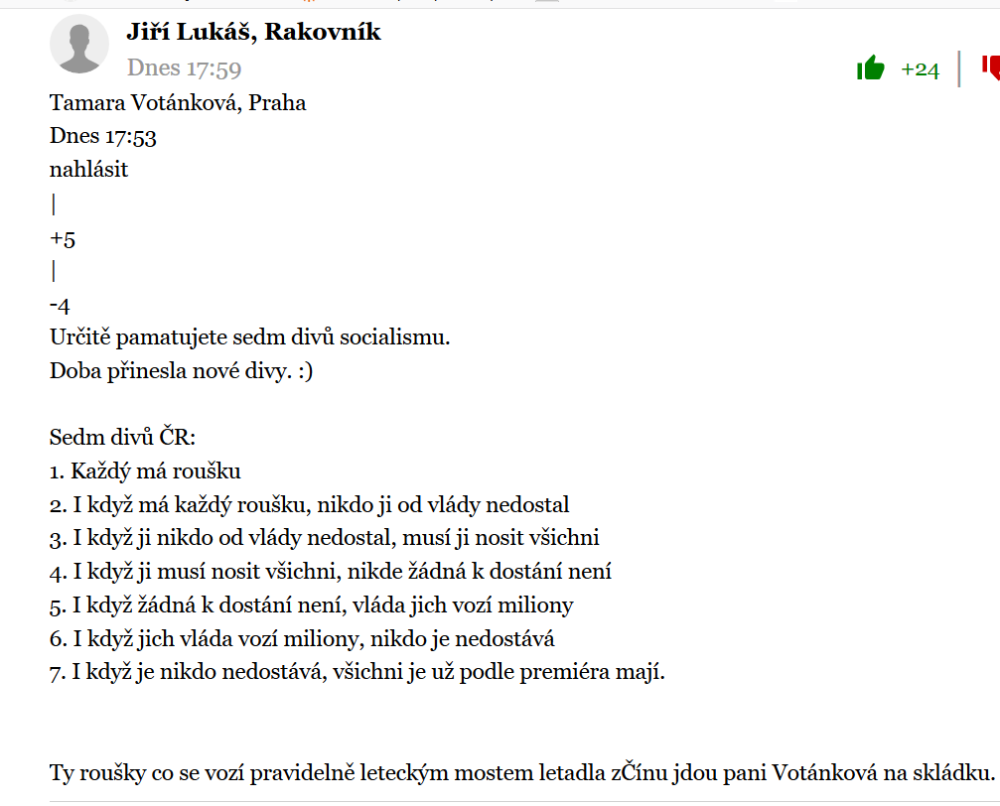Nenosil, ale v období chřipek jsem se vyhýbal MHD, kde chrblali ani si hubu nezakryli.ZaQik píše: 23.04.2020 06:29 Tys nekdy nosil kvuli chripce rousku? (pro otazku vychazim jen z Tveho prispevku - obsah i terminologie)