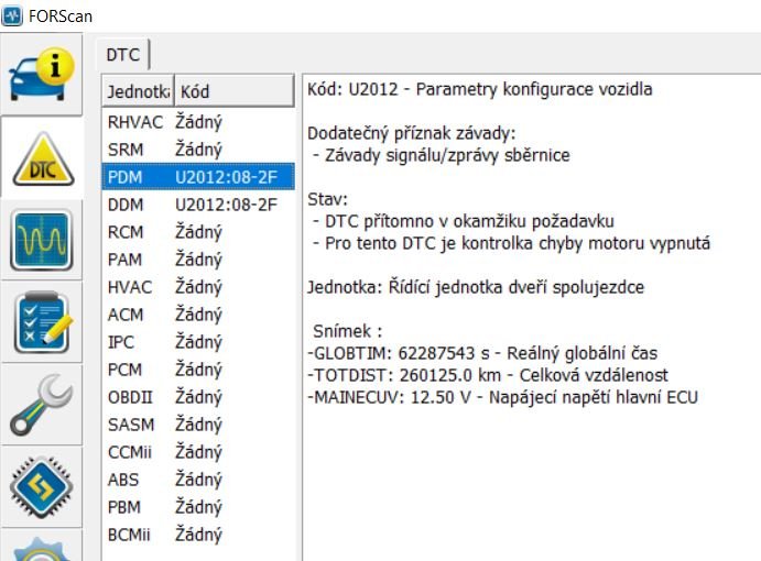 Při dalším odemknutí/ zamknutí, kombinaci s otevřením dveří, ... se nic nedělo. Nepomohlo ani vymazání chyb, reset PDM modulu, prostě nic. Ještě jsem si myslel, že je to vytlučenou baterkou, protože jsem se v autě hrabal celý den, měla pro změření multimetrem 12,12V. Ale po připojení na nabíječku se stav nezměnil.