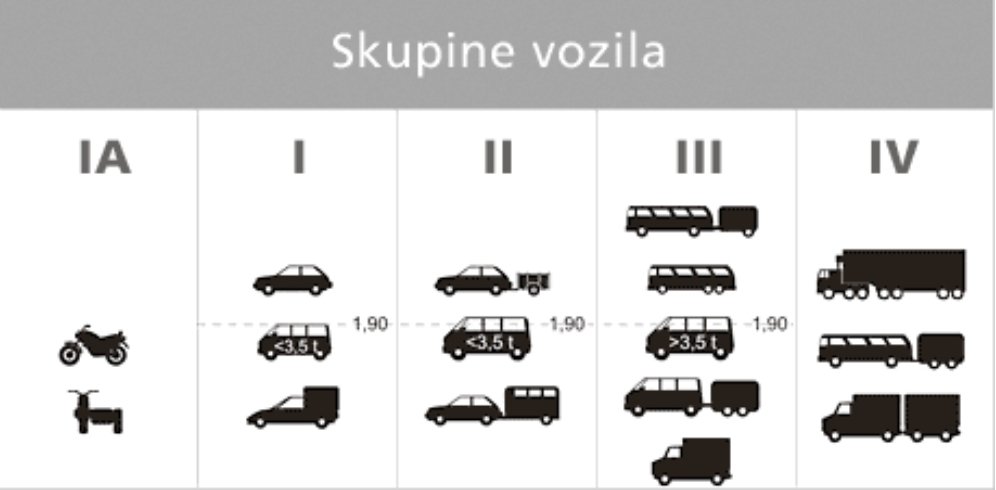 IV Motorna vozila s četiri ili više osovina, visine veće od 1,30 m mjereno kod prve osovine najveće dopuštene mase preko 3500 kg