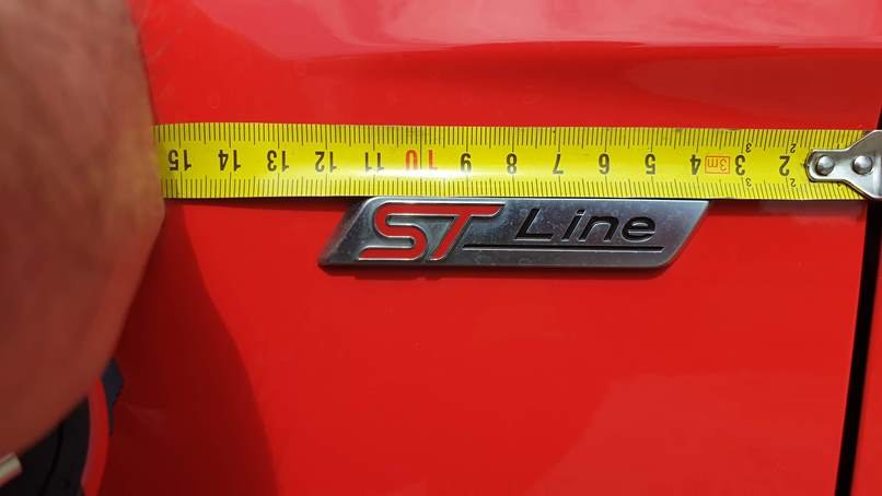 muze mi nekdo, prosim, s original STline vyfotit s prilozenym pravitkem, kde je umisteno logo na prednich blatnicich?