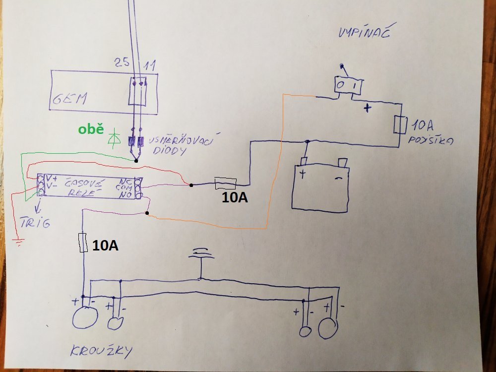 Dioda by mala byť v dobrom smere, lebo súbežne s tým drátom mi ide druhý na to relé a to funguje a viem že som ich dával k sebe rovnakým smerom...skôr asi konektor, ktorý som tam vložil bude asi problém, je tam málo miesta, tak je možno zle napojený.