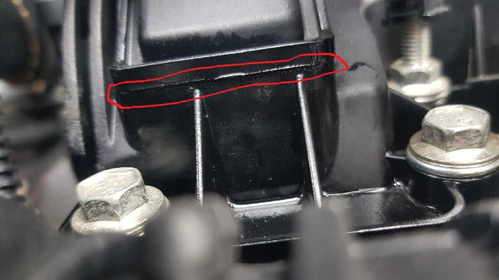 Nevím jestli to není úplná blbost ale... je možné že by ten olej šel z toho spoje plastových dílů viz fotka? Je to tam mastné taky a ten spoj je po celém tom dílu - přes celý motor, takže by to možná vysvětlovalo i to proč to je mastné i v té zadní části motoru...