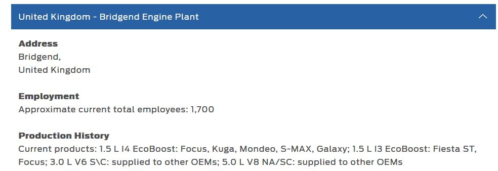 No dle toho odkazu se motory pro Focus dělali v Anglii v závodě Bridgend, Current products: 1.5 L I4 EcoBoost: Focus, Kuga, Mondeo, S-MAX, Galaxy.