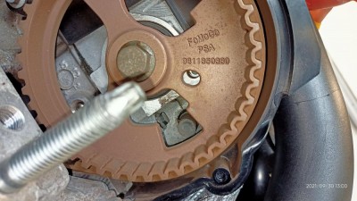 Na foto je vidět "nesouměrnost" otvorů = řemen (podle mechanika) možná až o 2 zuby mimo :shocked:
