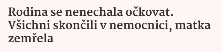 presne, neustale vnucovani a tim lidi jen naserou...a jak jsem psal, 3. nebo 4. davkou to nekonci, za rok-dva budou zase zvat na dalsi STKpbjun píše: 21.10.2021 21:00 Ono by možná celé očkování lidi brali trošku lépe, kdyby o něm vláda nevypouštěla dezinformace typu po očkování jste bezinfekční, po očkování nemusí učitelé nosit roušku protože nejsou rizikem pro okolí atd... Teď řeší celá rodina co s našima nejstaršíma protože na třetí dávku se ani jeden z nich netváří... Nejspíš to dopadne tak, že půjdou na protilátky a pokud budou mít dost tak se na to prostě vyserou...