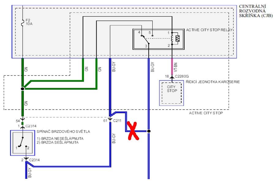 - vyvod 1 a 5 dame na pojistku F2 (interierova pojiskovnice), ktera napaji brzdova svetla