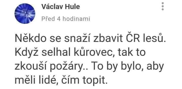 Tak jako před časem v telce dva hasiči nezávisle na sobě prohlásí, že nejvíc hoří tam, kde je nejvíc suchých kůrovcových stromů a vzápětí studovaný odborník prohlásí, že nejsilněji hoří živé stromy nasáklé smůlou.
