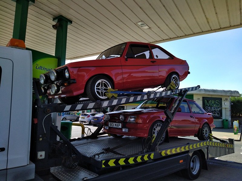 Už sobotní odpoledne podvečer to v podstatě začíná - na ulicích a silnicích ve všech směrech začíná Ford okupovat ve většině počtu dopravy. My se rozhodli, že ještě u jedné pumpy umyjeme auta, aby byla aspoň trochu čistá, za celou tu cestu z domu. Potkali jsme před sebou dvě auta. Červený Escort MK4 a Sierru Saphire. Vyskákali z toho, asi 4 barely rúzné chemie. Na první pohled auta přeleštěná jak blázen, ale majitelé se ohradili - "no, no, it´s dirty" :nixw: Po nás přijel borec v modré Fieste ST180. Jeho spolucestující mu auto celé umýval a já se s ním dal trochu do řeči. Hodně se divil, jaké je to u nás, že u nich můžou mít v autě pomalu jaderný reaktor a nikdo to neřeší a u nás nesmí být ani polorám...Dal nám nějaké tipy na nocleh, pár rad, popsal co nás zhruba asi čeká, protože jeho to byl 8-mý Ford Fair celkově. My našli na spánek nakonec místo před farmou cca 5km od Silverstonu. Tak jak se večer dobře pilo a mluvilo, ráno se trošku hůř vstávalo - respektive jen mýmu bráchovi, který jel ještě přes vjezd na okruh rozespalý ve spacáku na předním sedadle.