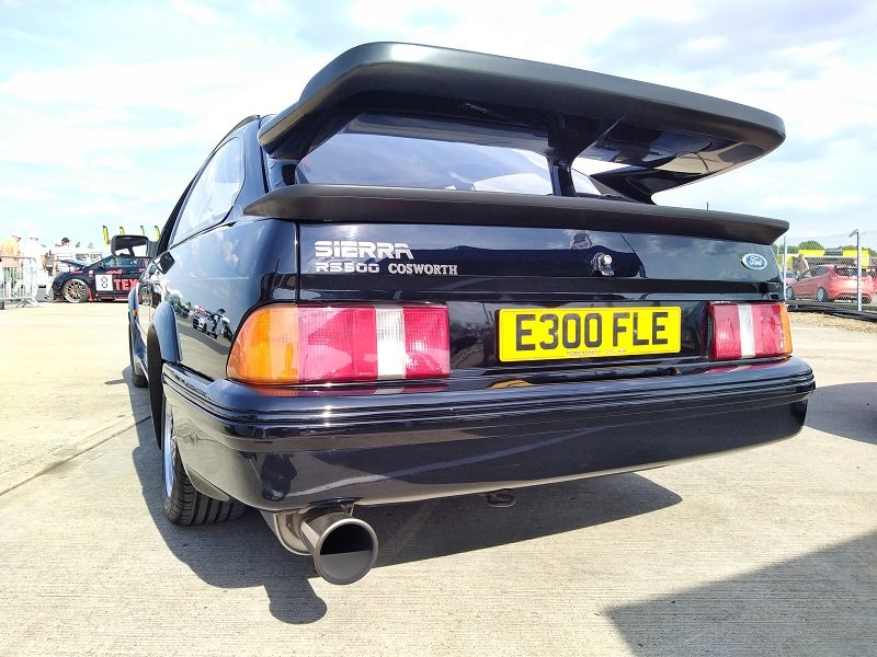 Jízdy pokračovaly během celého dne, takže jsme šli dál po okruhu sledovat, co vše ještě můžeme vidět. Za zmínku stojí určitě stánek hlavního sponzora Mountune. Stály se tam velké fronty v turniketech na prodej dílů - a že to tam chvíli vypadalo, jako kdyby ty věci dávali zadarmo. Za menším hloučkem lidí - závodní verze Ford RS200. Jdeme dále - nacházíme místo se stánky s občerstvením a autokosmetikou. Před ním stojí stará hranatá Fiesta - s motorem YB Cosworth a Turbem T04, přestavěnou na zadní náhon. Majitel patrně šílenec. Asi po další půlhodině procházení mezi zajímavými kousky, které byly různě zatoulané - jako třeba pár Focusů RS MK1, které nestály u hlavního dvojřadu. Co jsme tak pochopili, tak jsou určité zóny, kde jsou určitá auta pospolu a pak ještě zóny, kde jsou kluby. Takže proto se kolikrát objevily auta různě rozházená. Ale bylo to svým způsobem takové pestřejší a vlastně dopředu nikdo nevěděl, co tam bude stát. Po chvíli vidím první Sierru RS Cosworth v bílé barvě a 3dveř s ploutví. Není to RS500, ale první civilní třídveř. Vedle něj Saphire RS Cosworth. Oba kousky přepečlivě umyty a naleštěny. Kousek od těchto krásných kousků procházíme místem, kde byla burza s díly, stánky s různým oblečením, nálepkami, kosmetikou, díly, modely autíček až po občerstvení. Na chvíli odběhnul Mates - ikdyž tam nebylo tak přelidněno jak jsem čekal, během pár vteřin byl pryč. Za chvíli se objevil, drapnul mě a že se asi poseru! - No skoro ano, Ford Capri, ale překopaný dobovým týmem DRM (předchůdci DTM) Zakspeed. Takže na place stál Ford Capri Zakspeed Turbo. Upřímně bych tohle čekal spíše mimo Anglii, ale tohle mě dostalo! Byly dvě varianty motorů - 1,4 Turbo 480koní 9200 ot/min a 1,7 Turbo něco přes 600koní a stejně točící se nesmysl...Přiznám se, že nevím která jednotka v tom byla, ale bylo to šílené, vidět to na vlastní oči a z blízka. Auto z trubek o váze kolem 800kg s takovým výkonem. Masivní bodykit a pod dlouhou kapotou malý brutální mixér, který ve své době neměl konkurenci. Takže zase zpět nohama na zem a jde se dál. O kousek dál nám zase předvedli angličani zlaté ruce a lidovou tvořivost. Focus RS MK2 Cabriolet... To už se po sobě díváme, jestli nemáme úpal, ale tam to asi krom nás 4 nikoho ze židle nezvedalo. Pomalu jsme dostávali hlad, takže jsme se odebrali směrem ke stánku. Po cestě nacházím první Sierru RS500 Cosworth v originál verzi, ale místo T04 bylo turbo Borg Warner. Přicházíme ke stánkům na anglický cheesburger, který byl snad asi nejlepší, jaký jsem kdy jedl, až na uřvanou prodávající, která byla jako papoušek a v okruhu stánků jsme slyšeli jen ji a její " Next please! " . Nicméně sedímena u stolu a díváme se na Mustang Shelby GT500 Eleanor...Po jídle jsme pokračovali v procházce dále. Na jednom place bylo asi 20kousků Fiesty ST200 v šedé barvě. Po cestě vidíme palouk, kde z dálky září oranžová asi 80ks ST Focusů MK2 a MK3, nacházíme Escorty, Mondea, Escorty ve verzi kurýr, Sierru pickup. Mondea ST220....bylo toho tolik, že se to nedalo ani všechno zapamatovat a fotit.
