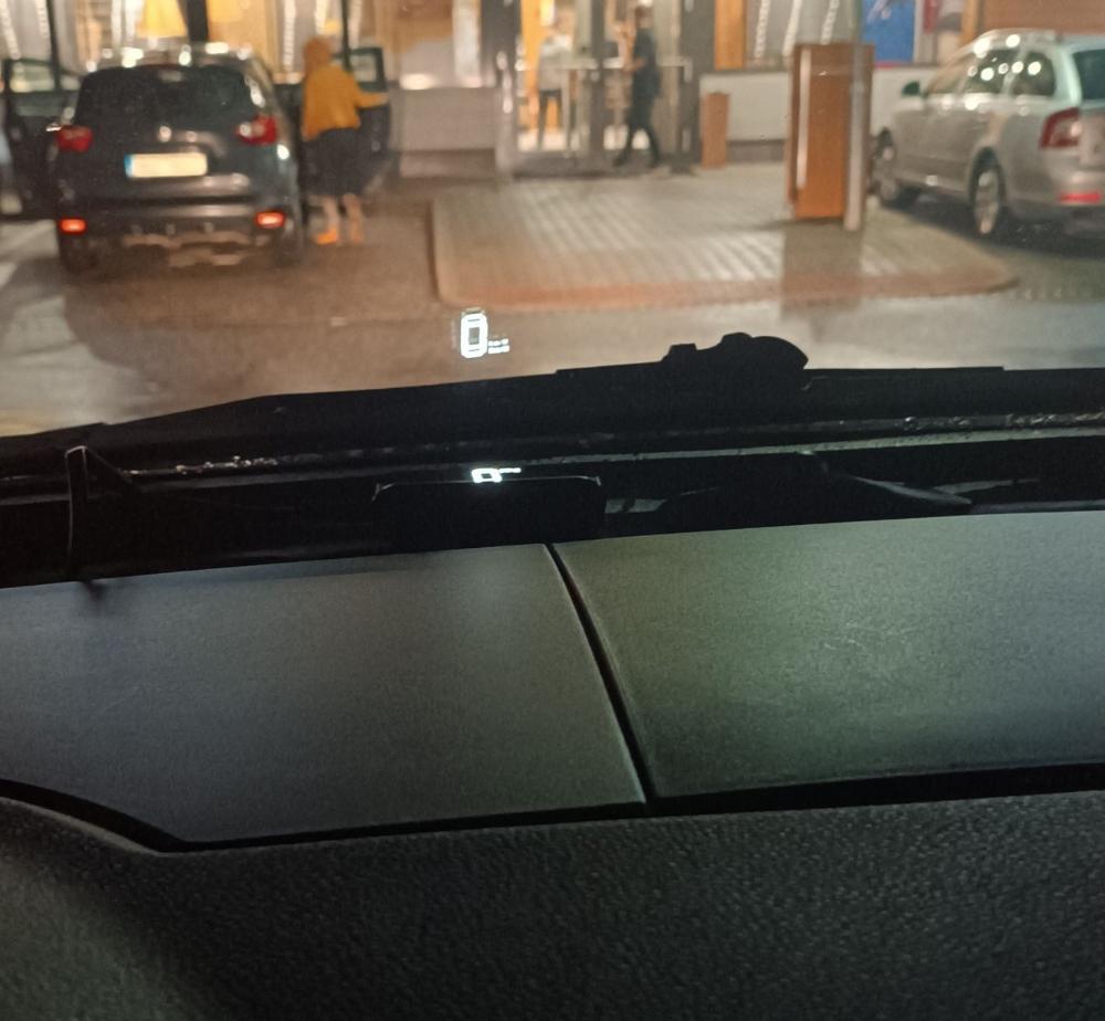 Přikládám nic moc fotku, kdy se to odráží jen v čelním skle. Dvojité kontury v důsledku vnitřní a vnější plochy skla. V pohodě čitelné, rušivé částečně.