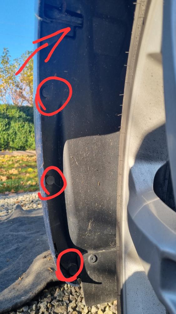 Vypíchneme dva špunty na krajích (u světla co nedemontuješ nemusíš), pak 4 menší špunty, které jsem nezakroužkoval ale jsou ve stejné úrovni co zbytek, a vyšroubujem 3x torx