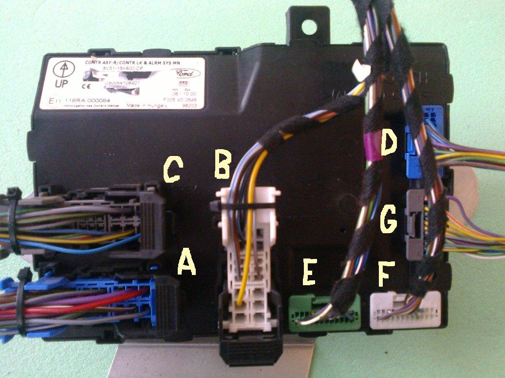- pokud konektor s kabelem chybi, pouzijeme kapotovy konektor napr. z FF2 se dvema piny a vedeme dva draty pod svetlo, kde jeden ukostrime a druhy pres gumovou pruchodku pred ridice dotahneme k jeho noham, kde ho zapojime jako samici do konektoru C211 a odtud (pokud neni priprava) pokracujeme az na BCMi pred spolujezdce na konektor D pin 10 2. osazeni sireny