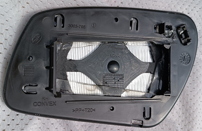 Takže jsem na origo držák pomocí oboustranné nano lepenky (2 vrstvy) přilepil náhradu, tedy zrcadlo, fólii i plast. rámeček. Tím se náhrada nevešla do původního plastu, protože ten plast po obvodu přesahuje sklo. Proto 2 vrstvy (asi 2 mm. totál). Na poslední fotce je vidět tu lepenku. Drží to dobře, jen nemám vyřešeno vyhřívání, protože náhrada má konektor v místě, kde má originál úchyt na "tyčku" která vede k motorku. Na autě to není prakticky poznat. Zabralo to asi 30 min.