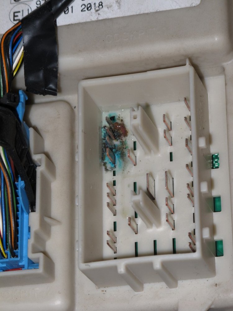 Závada odstraněna. Po silném dešti se dostala voda do konektoru cocpit 2 centrální ppjistkové jednotky a zoxidovali kontakty. Kontaktol to spravil.