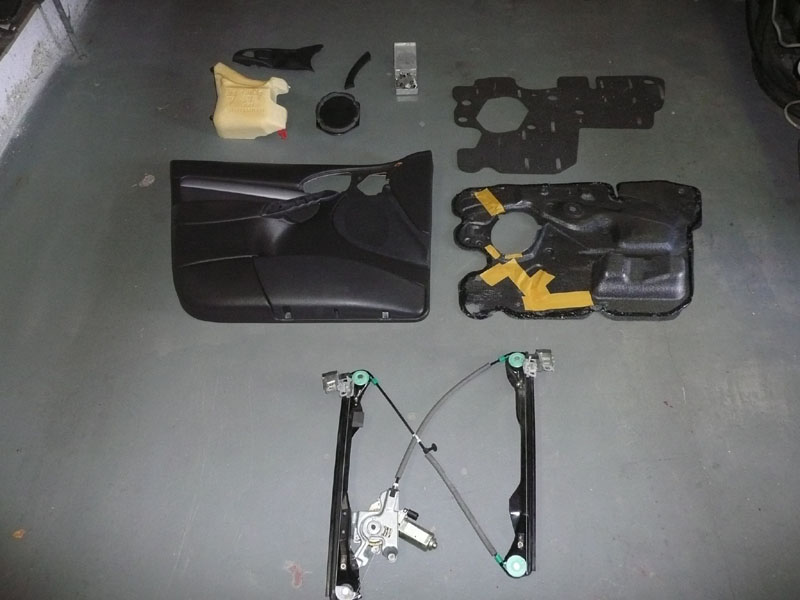 Slabší nátury si smlsnou už při odlepování tapecírunku od tý matlavý černý hmoty při snaze zachovat ji alespoň trochu při sobě (první myšlenky dezerce) Po překonání této překážky a vyndání stahovačky ven po letmém prohlídnutí se ukázala závady.Byla prasklá jedna z umělých hmot.Na fotu je jezdec z druhé strany kde byla jen naprasklá jedna packa. Tu jsem nahradil kouskem umělý hmoty s vyříznutou drážkou prostě tak aby plnil původní funkci,přišroubavaný jedním samořezným vrutíkem.Na druhý straně byly tyto packy obě,ale jedna už naprasklá a bylo by jen otázkou času kdy by umřela taky.Tu jsem vyztužil plechema v místě kde byla hmota prasklá pájkou roztavil-zavařil.Zkoušel jsem na to nakapat roztavenou jinou umělotinu,ale ta nechytala (šedá hmota.)No a taky tam byl prasklý jeden konec chlívečku na zarážku co je na lanku tj.okno by dolů táhlo,ale nahoru by jelo lanko samotný hmotu by netáhlo (každý,kdo se do toho pustí či pustil ví o čem je řeč) no a to jsem taky spravil kouskem plechu.Víc fota. Každopádně nejhorší na celé opravě bylo zamotaný lanko na kladce.To bylo fakt hustý! Samozřejmě se pokroutilo.To jsem co nejlíp porovnal kleštěma,pozor na sploštění.Dřív se však musí sundat motorek s mechnismem to jsou tři torx šroubky,kladka jako taková sundat nejde.Potom ručně navinout lanko tak jak má být a vrátit motorek,následovalo nasazení lanka na všechny kladky jde to blbě,ale na vrchu zelené kladky je šikovný excentr,který velice usnadní konečné nasazení.Během celý operace jsem několikráte potřeboval elektricky popojet s lankem ( s motorek lankem nehnete) tady jsem využil svůj laboratorní zdroj z minulosti kdy jsem ještě kutil elektroniku protože přenášet celou stahovačku ke dveřím je nepraktický otravný a špatně se s ní pracuje.Pozor! na jakékoliv popojíždění poku ještě lanko není nasazené na VŠECH kladkách si vemte pomocníka,který vám bude lanko napínat,nebude-li napnuté bude se špatně navíjet (přes sebe) a můžete začít znova.A jak máte lanko na místě je vyhráno.Potom nějakým způsobem dostat stahovačku do dveří na své místo máznout vazelínou ( já grafitovou) a můžete si mnout ruce,že jste ušetřily 8500 kaček + práci v servisu,nebo v lepším případě 1500 za stahovačku o které nic nevíte a jejíž životnost je ve hvězdách.Mě to nestálo nic krom pár pivek.Jiná otázka je jaké moje práce bude mít trvání.Každopádně v případě problému dám vědět.Jo a ještě jeden dojem stahování je o proti dřívějšku krásně tichý paráda.