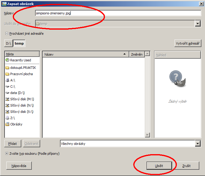 [5] klikneme opet pravym tlacitkem na jiz zmenseny obrazek a zvolime Soubor - Ulozit jako... [6] zvolime novy nazev obrazku, cestu kam obrazek ulozit a zmackneme Ulozit [7] pak nic nemenime a dame opet Ulozit a je to hotovo