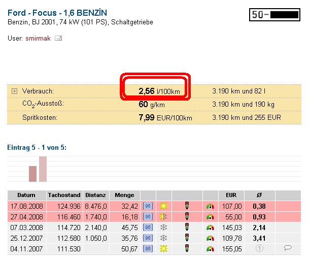 Hosi a damy, kam se vsichni hrabem tady na tohoto korinka... Pokud dobre vidim, tak najel za 16,18l 1.740 km a dale dokonce za 32,42 litru 8.476 (osm tisic a nejaky drobny) kilometru