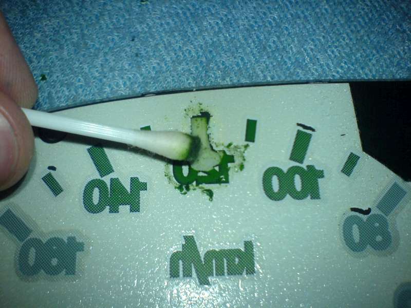 treba vybrat budiky(navod tu niekde je),potom treba dat dole ten priehladny silt(to zvladne aj male dieta-4 zapadky),dalej treba odobrat rucicky(mne pomohla vidlicka).No a teraz je potrebne dat dole foliu foto c.1. odporucam to robit pomali,po kusockoch to odliepat,aby sa to nezlomilo,ide to celkom v poho len rukami.Je dost mozne ze po ztrhnuti folie ostanu na tom plaste kusky farby. foto c.2.POZOR.nepouzivat ziadne chemikalie(ide to zoskrabat prstom),samozrejme ja som pouzil priatelkin odlakovac a ten nejako zreagoval a vytvoril matny povrch(dako to musim vylestit).Na samotnej folii je zospodu zelena farba,ktoru treba odstranit,je to dost makacka lebo na tej zelenej farbe je taky lak a na nom lepidlo.ja som to robil odlakovacom a tycinkami do usi(cca 45min a minusom ich asi 40) foto c.3.je lepsie robit to ciselko po ciselku,palicku po palicke,lebo ked to ocistite cele (vid.predchadzajuce fotky)tak to jemne presvita.treba sa s tim vybavit.Ak to bude presvitat dobra zachrana je centropenka,ale aj ta jemne presvita. ja som si este cervenou centropenkou zafarbil policka na tachometri,ale mam pocit,ze je lepsie pouzit daku cervenu foliu.No a ked to setko mate mozte dat spat foliu a zalozit rucicky.a uz len ostava vymenit zlte ziarovky za ine.napr modre.alebo ledky ako to idem riesit ja.este cakam kym mi dorazia,potom nafotim ako je to riesene,lebo tam nedavam 3 ledky ale 5(vyvrtam duri a priletujem kabliky) Dufam ze dakomu toto pomoze.