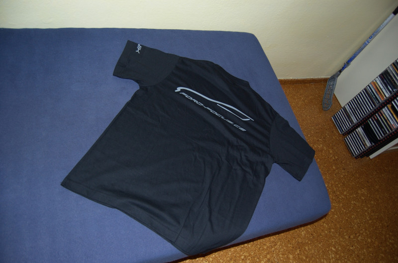 Tak takto vypadá modré triko, příště bych asi zvolil potisk bílé nebo stříbrné barvy.
