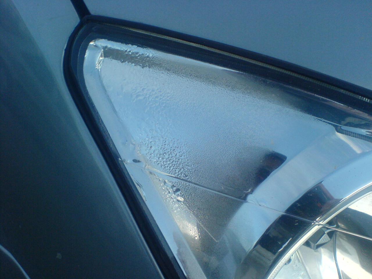 2. Vlhkost se dostává přes lepený spoj skla a tělesa světlometu. Dost často je to vidět u bouraných aut,nebo to může být vada z výroby.