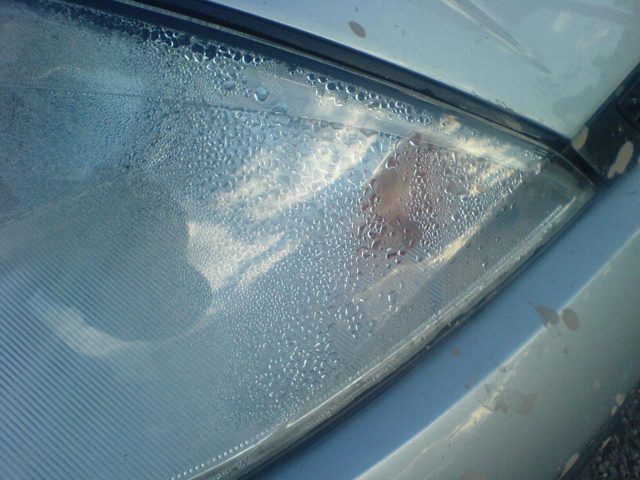 2. Vlhkost se dostává přes lepený spoj skla a tělesa světlometu. Dost často je to vidět u bouraných aut,nebo to může být vada z výroby.
