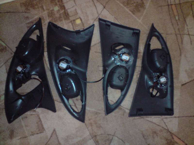 Tak hotovo. nechtěl jsem být ale kopie forbese, takže jsem chtěl mít ty repráčky překryté "něčím", aby zároveň to něco vyplnilo i tu mezeru mezi reprem a plastem. napadl mě molitan a potahová látka na repro, ale 1000x750 mm mi přišlo zbytečně moc (menší neprodávali), tak jsem si koupil 4ks náhradních potahů na sluchátka. Samozřejmě neměli jiné než KOSS, takže 150,- jen to prásklo a když jsem v sobotu přišel do garáže, tak otec tam měl ještě za 120-ky potahy hlavových opěrek !!! 3mm molitan a potáhnutý černou lesklou látkou - IDEAL !!! takže už jenom to zapojit a hotovo.