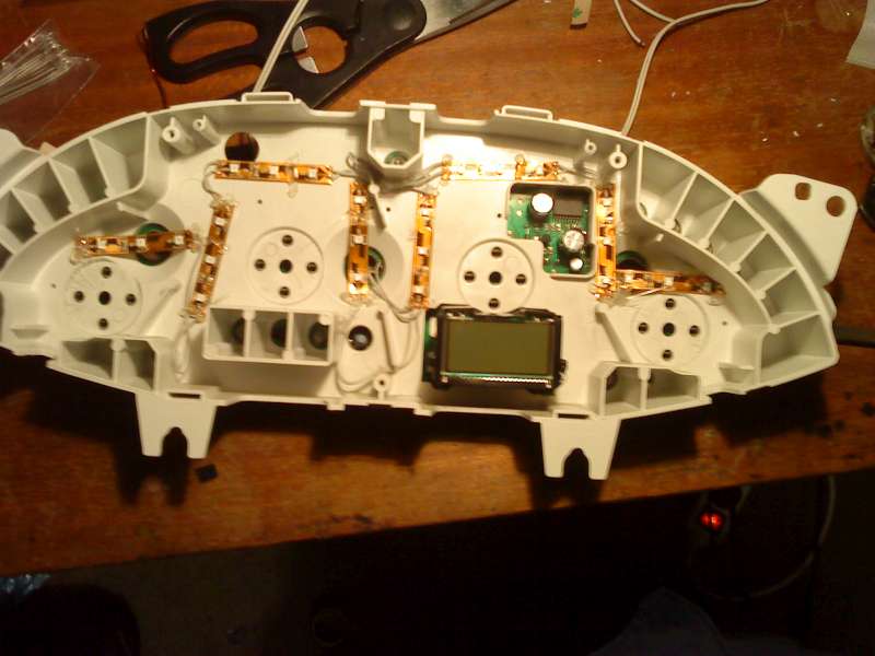 Hele klasika.. v Gesu za 25 ,- kč jeden pásek po 3 ( nezalitých ) diodách. nekde se fouknul celej pásek ale v rádiu se museli odletovat ptž tam už SMD jedny měli. ty zelený... momentáně sem udělal návrh v PC na ,,Ventilaci,, která pude taky do modra.. vyvrtal sem vrtačkou ( podobně jako damon ) postavičky a čísla a přes ně pak nalepím vytisklou šablonu kterou hodim do bezbarvého laku ;) a nikdo ani nepozná že jsem se v tom hrabal... :idea: na první pohled