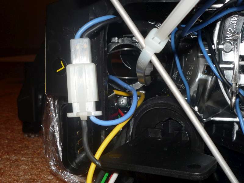 Mě je to trochu,dole jde modrý a černý do jednoho konektoru tak propojený jsou,ty světla ti nefungují?