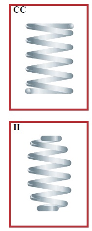 Označení přední pružiny pro Focus je 40 275 72 (40 zřejmě označuje že přijde na přední nápravu, je to u všech předních pružin) a označení zadní pružiny ST220 je 42 275 72. Což naznačuje, že by pružiny mohly být v něčem podobné. Nicméně pružina pro Focus je typu CC (viz obr.) a pružina pro ST je typu II (viz obr.).