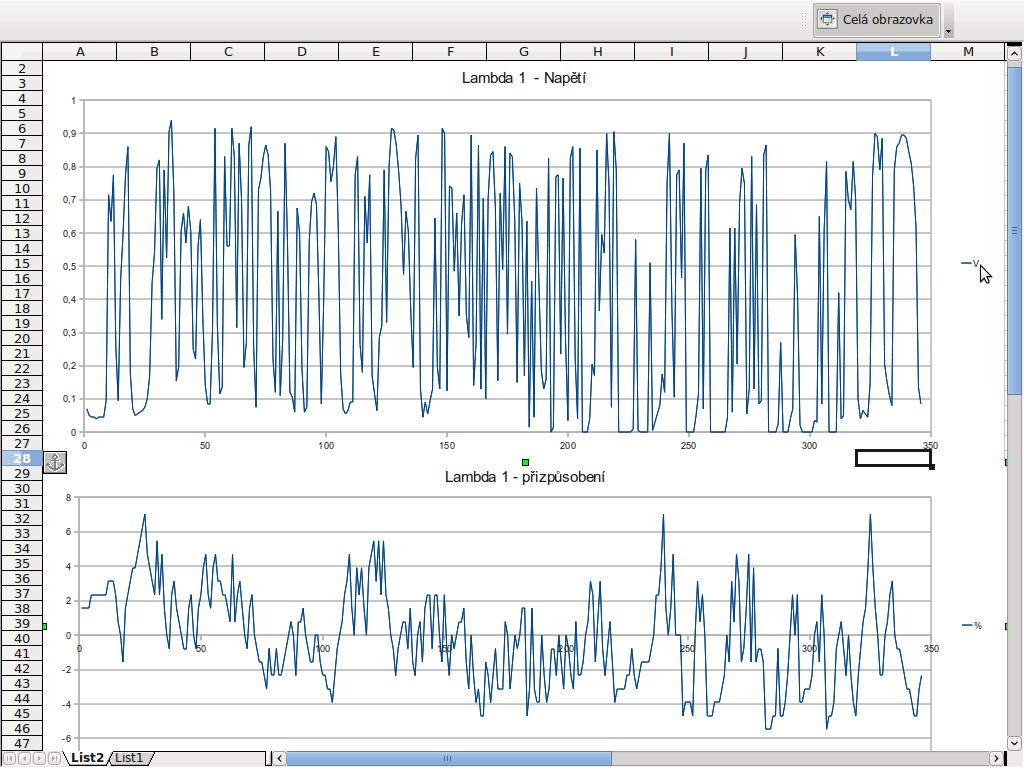 Průběh druhé lambda sondy s přizpůsobením - postupně zahřívané auto
