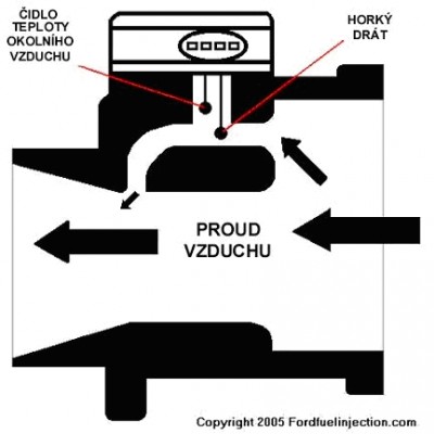 čoveče lidi chtěl sem se i zeptat jestli nemáte někdo zkušenosti s přidáním intercooleru k motoru před vzduchový filtr pro chladnější vzduch do motoru jeden můj známí povídal že je to výborný na zvýšení výkonu a na snížení spotřeby. jenže moc to nepobírám pač jestli su dobře seznámen s vahou vzduchu, tak je v ní čidlo teploty okolního vzduchu a horký drát (viz obr.) ... mám to chápat tak že to stejně ten vzduch co projde přes intercooler se ve vaze vzduchu stejně otepli na potřebnou teplotu ?????