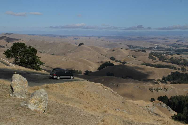 Nejdříve jsme vyrazili z Hastings do nedalekého městečka Havelock North, tam v podstatě není moc zajímavých věcí, ale vede odtamtud silnice na Te Mata Peak. To je nejvetší hora v okolí a dá se autem vyjet až nahoru. Vede tam i pár pěších stezek a dokonce je tam i mountain bike track. Chtěl jsem si půjčit kolo a aspoň si to sjet dolů, vypadalo to lákavě. Bohužel jsem nenašel nikoho kdo by se mnou jel a samotnému se mi nechtělo.