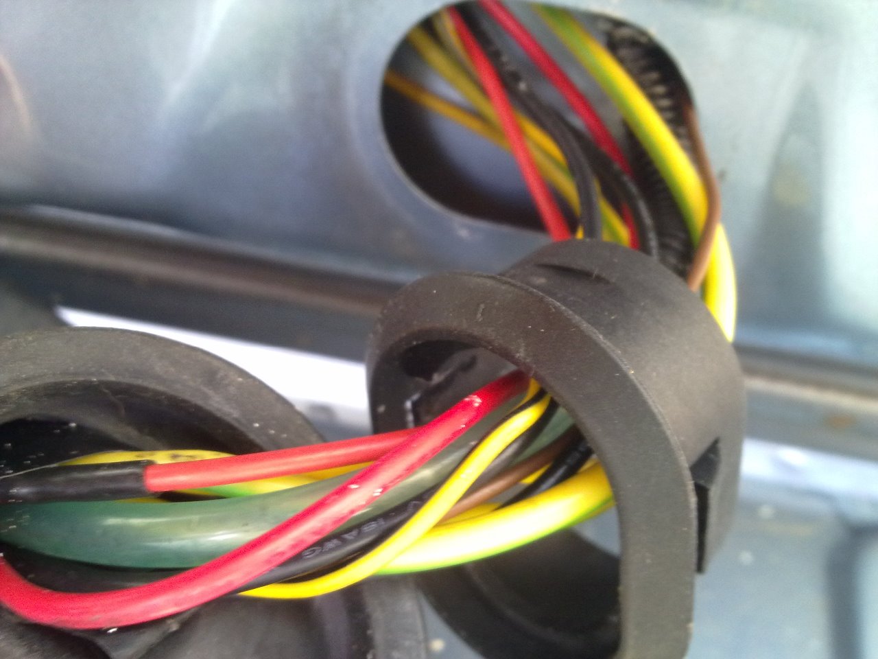 Tak jsem se k tomu konečně dostal , vsadil jsem na zkrat v 5 dveřích a bylo to správně. Sundal jsem tu průchodku a prostřední kryt nad oknem . Zdá se že první praskl ten husí krk ostřikovače a kapalina pak vykonala své izolace kabelů byla jak kámen . Tak jsem to odstřihl celé , naletoval nové kabely , přetáhl smršťovací bužírkou ,zaïzoloval, do toho husího krku ostřikovače narval hadičku s vnějším průměrem 5mm.Kabely jsem napojil pak pod tou krytkou nahoře nad oknem . Pak vysunout i ty plastové koncovky na kterých je navlečená průchodka ještě vše zaizolovat navléct průchodku na koncovky a koncovky zacvaknout zpátky . Už funguje vše jak má .
