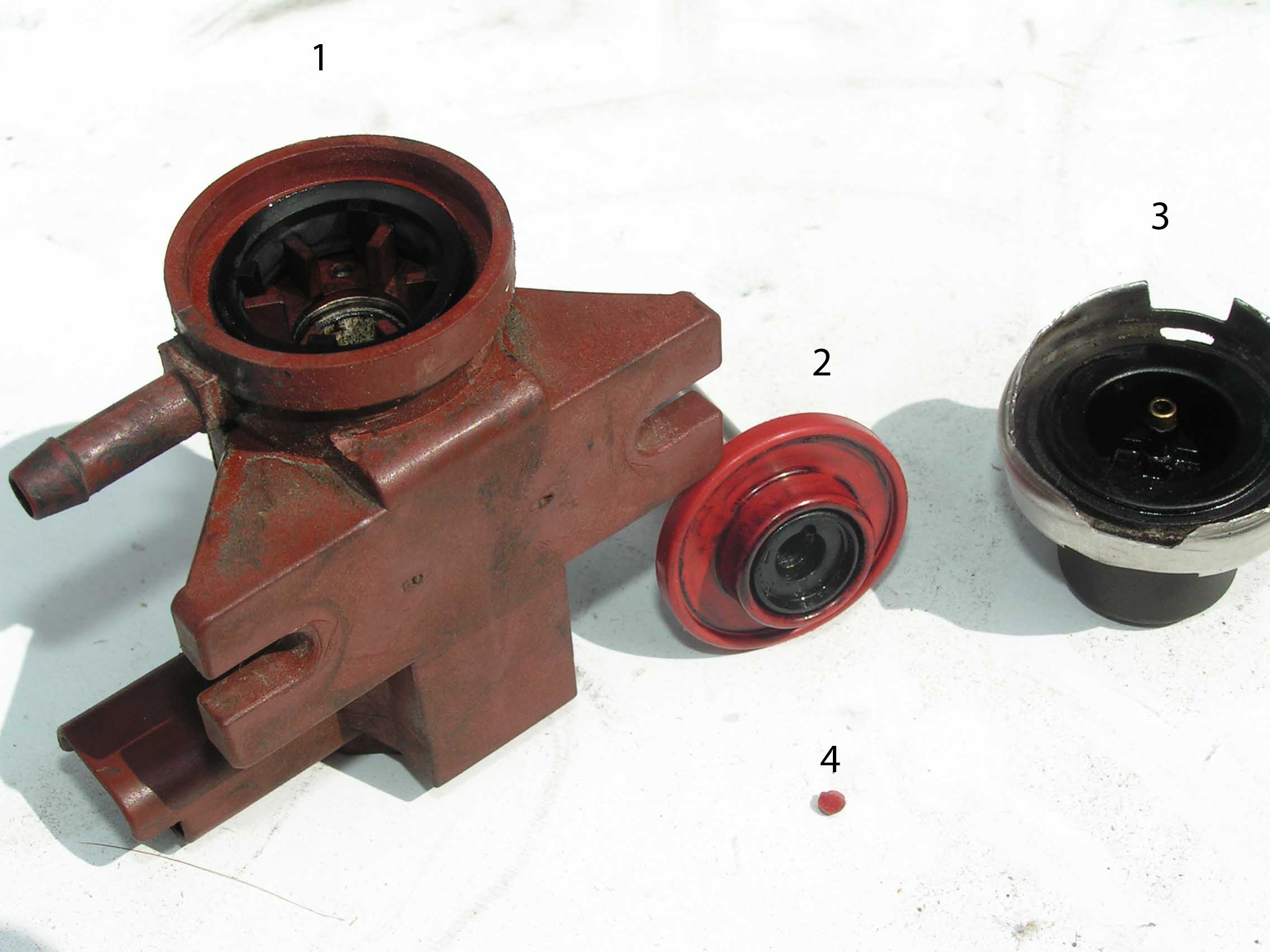 Tak jsem to rozebral a kovová trubička z 3 vyrazila z membrány 2 kousek 4, který zůstal na trubičce přisátý a proto se podtlak nedostal k regulátoru turba.