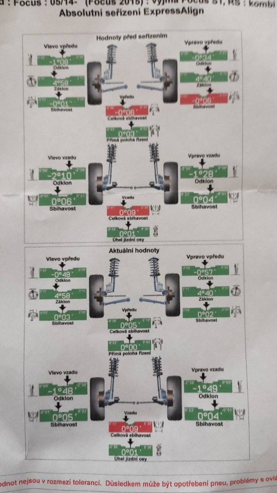 tak som zašiel na geometriu. povedal som že sa mi nezdá odklon kolies vzadu. kolesá zmerali, prišiel povedať že jedno predne je málinko mimo a že to nastaví. videl som ho z presklenej čakárne že na predku niečo nastavoval. vzadu nič. ale podľa protokolu sa aj vzadu záhadne zmenili hodnoty.