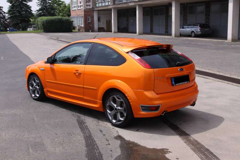 Ford Focus II 2.5T ST, 3 dv.,Electric Orange byl, je Golf GTI VII Performance Pack