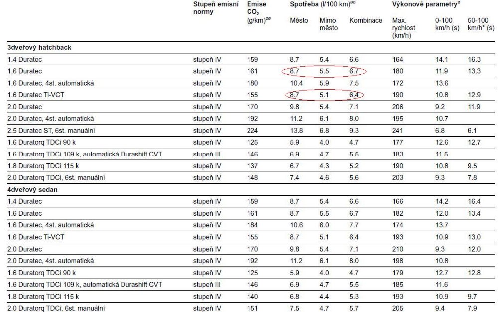 A povšimněte si rozdílu mezi 1,6 74kW a 1,6 85kW Je to z katalogu Focusu z roku 2005