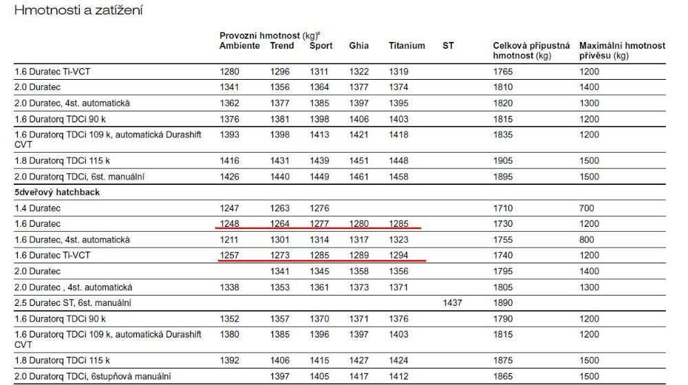 Dnes už takto podrobné údaje výrobci snad ani neuvádí, kde se hmotnost liší podle stupně výbavy auta. Samozřejmě se nesmí zapomenout na správně nahuštěné pneumatiky