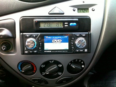Tak za 44 minut bylo hotovo !!! Nejdříve jsem pomalinku dával ten plechový rámeček do ISO rámečku, pak jsem protahoval mikrofón na handsfree a uzemňovací kabel, abych mohl sledovat DVD i za jízdy. Potom jsem napojil Ford konektory do ISO a zkusil zapnout. A nic !