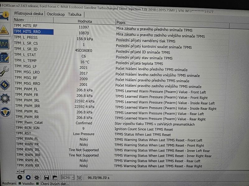 Když jsem zadal TPMS, vše vyznačil tak jsem obdržel tato data viz přílohy