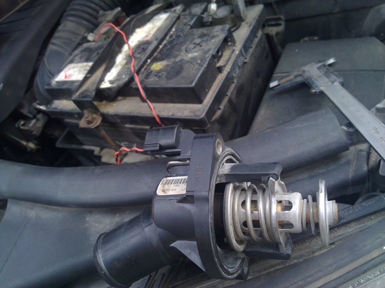 Viděl jsem drátky, ktere vedou uvnitř termostatu od konektoru k středovému válečku termostatu. Aby se tudy vedl proud k předehřevu malého okruhu se mi moc nezdá, drátky jsou opravdu hodně, hodně tenké. Termostat jsem zkoušel ve vřelé (postupně od horké až do opravdu hodně bublající) vodě a zůstal stále zavřený. Proto mne napadlo, jestli ford nevymyslel možnost: čidlo teploty dá ŘJ signál o teplotě pro otevření termostatu, ŘJ sepne proud, který jde do termostatu a tento proud přes "třeba odporový drát uložený ve válečku oprostřed termostatu" ohřeje termostat zevnitř (nikoliv z venku přímo vodou) a ten otevře. Samotnému se mi to zdá hodně přitažené za vlasy, ale dnes bych se nedivil ničemu.