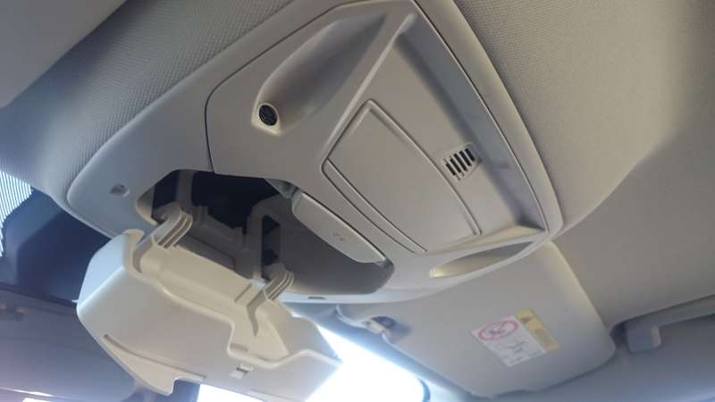 demontaz velke stropni konzole - musis vyndat obdelnikovou ucpavku mezi mikrofonem a oteviracem drzaku bryli; pod nim jsou dva srouby