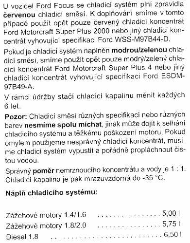 , ale nie. Skus naštartovať a nechať motor asi tam 1-2min bežat na tich 1000-1500ot/min. Poprve skontroluj počas chodu motora či ti nezačne signalizovať kontrolku mala by to byť nieaka taka ako slničko a v tom ! alebo prinajhoršom ten taky žlty motor čo je celkom na ľavo v rohu. Potom za 2 ak maš diesel tak pri diesloch trva dlhši čas kym sa zohreje chladiaca kvapalina. Ak maš benzin tak tam normalne. Čiže ak po tich 2 min. sa ti dostane teplota na prevadzkovu tak maš malo chlad. kvapaliny. Vypni motor a skus tak jemne priložiť ruku na motor . Nemal by byť priliš horuci. Ak ano tak nemaš chladiacu. v tomto pripade je dobre u focusov to, že ak nahodou neni chladiaca tak sa vyradia z činnosti 2 valce nedodava sa do nich palivo a služia ako tzv. chladič, ale to len na určitu dobu.Dufam, že som ti dačo pomohol. Potom daj vedieť čo a ako. Nedolievaj však žiadnu destilovanu vodu ani nič podobne. Musi tam isť zvlaštna chladiaca.